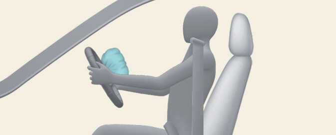 A fully inflated airbag (with a properly fastened seat belt) slows the forward motion of the driver or passenger, reducing the risk of head and chest injury.