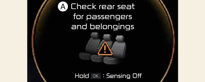 If you do not want to use the Rear Occupant Alert (ROA) system, press OK button on the steering wheel when the 1st alert is displayed on the cluster. Doing so will deactivate the 2nd alert once.