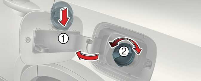 To open the fuel filler door, press the 3 o'clock position edge of the fuel filler door.