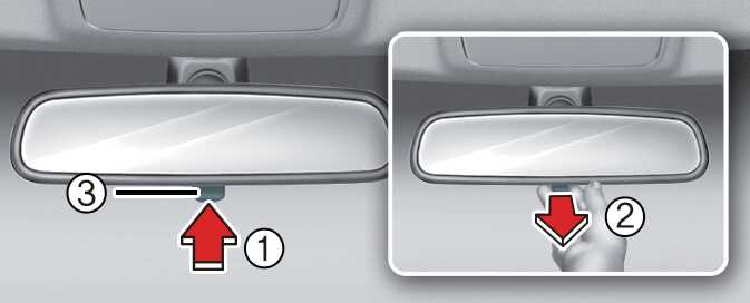 Make this adjustment before you start driving and while the day/night lever is in the day position (1).