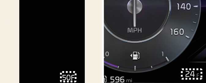 This gauge indicates the current outside air temperatures by 1 °F (1 °C).
