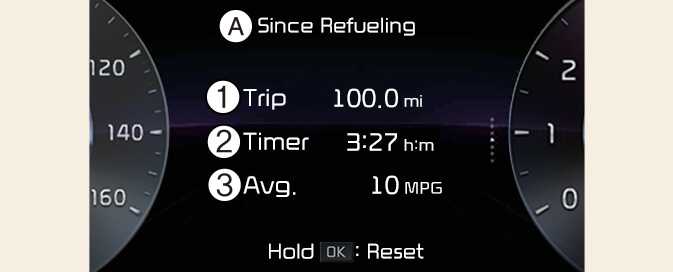 If you press "OK" button for more than 1 second after the information since refueling is displayed, the information will be reset.