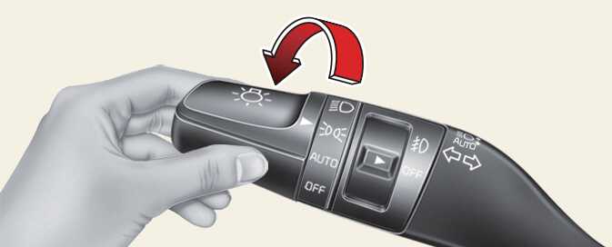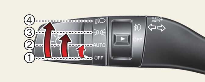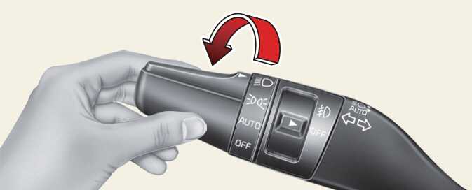 To operate the lights, turn the knob at the end of the control lever to one of the following positions: