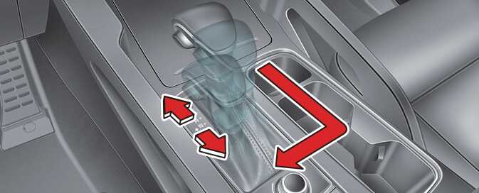 In Manual mode, moving the shift lever backwards or forwards will allow you to make gearshifts rapidly. In contrast to a manual transmission, the Manual mode allows gearshifts with the accelerator pedal depressed.