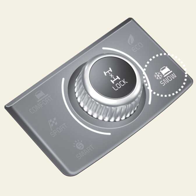 SNOW mode is used to appropriately distribute the vehicle's traction forces and help prevent wheel slippage when driving on snowy or slippery road. |