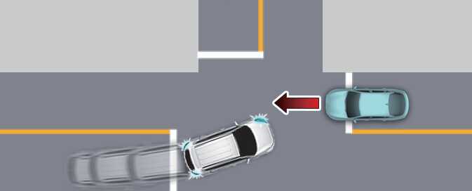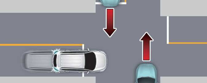 Junction Crossing function will help avoid a collision with oncoming vehicles on the left or right side when crossing an intersection by applying emergency braking.