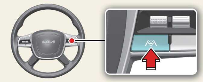 With the vehicle ON, press and hold the Lane Driving Assist button to turn on/off Lane Keeping Assist. If Lane Keeping Assist is activated, the indicator (