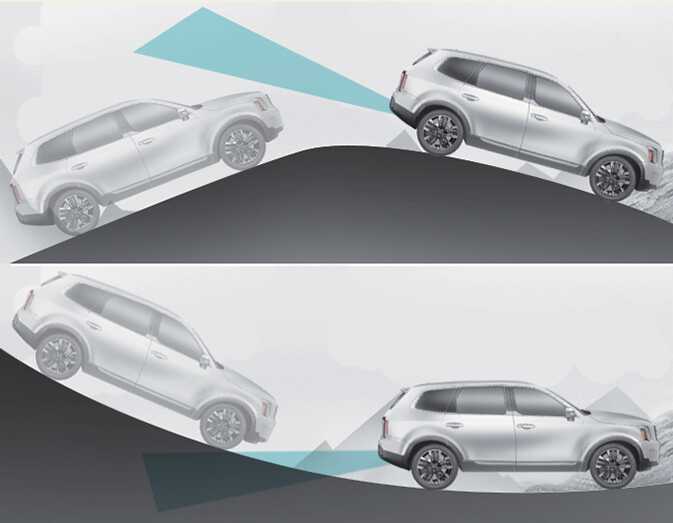 OON052052_2Blind-Spot Collision-Avoidance Assist may not operate properly when driving on a slope. The function may not detect the vehicle in the next lane or may incorrectly detect the ground or structure.