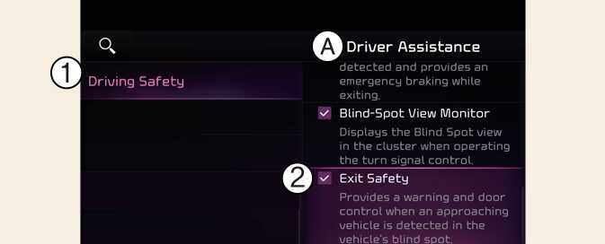 It you restart the vehicle, Safe Exit Assist will maintain the last setting.