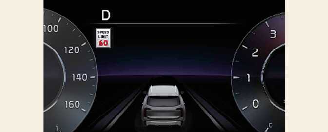 When driving at a speed higher than the displayed speed limit, the red speed limit indicator will be indicated.