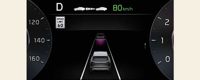 When operating Manual Speed Limit Assist or Smart Cruise Control, if the speed set by the driver is the same as the speed limit on the road, the set speed is automatically adjusted accordingly the speed limit afterwards. The auto set speed change function operates on roads with a speed limit of above 45 mph (70 km/h). When the function is activated, the set speed on the instrument cluster is displayed in green.