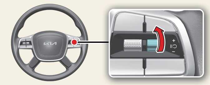 Push the (+) switch up and hold it. The set speed will increase by 5 mph (10 km/h) each time the switch is operated in this manner.