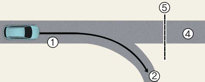 [1]: Driving route, [2]: Branch line, [3]: Curved road section, [4]: Main road