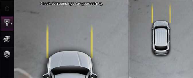 Parking guidance is displayed on the right side of the Surround View Monitor screen when the Front or Rear Top View Parking Guidance is selected.