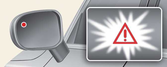 The warning light on the outside rearview mirror, a warning message, a warning symbol, an audible warning, and steering wheel vibration will warn the driver of a collision warning. A warning will also appear on the infotainment system screen.