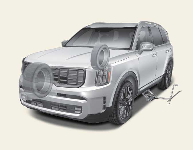 After you have changed the wheels, always secure the flat tire in its place and return the jack and tools to their proper storage locations.