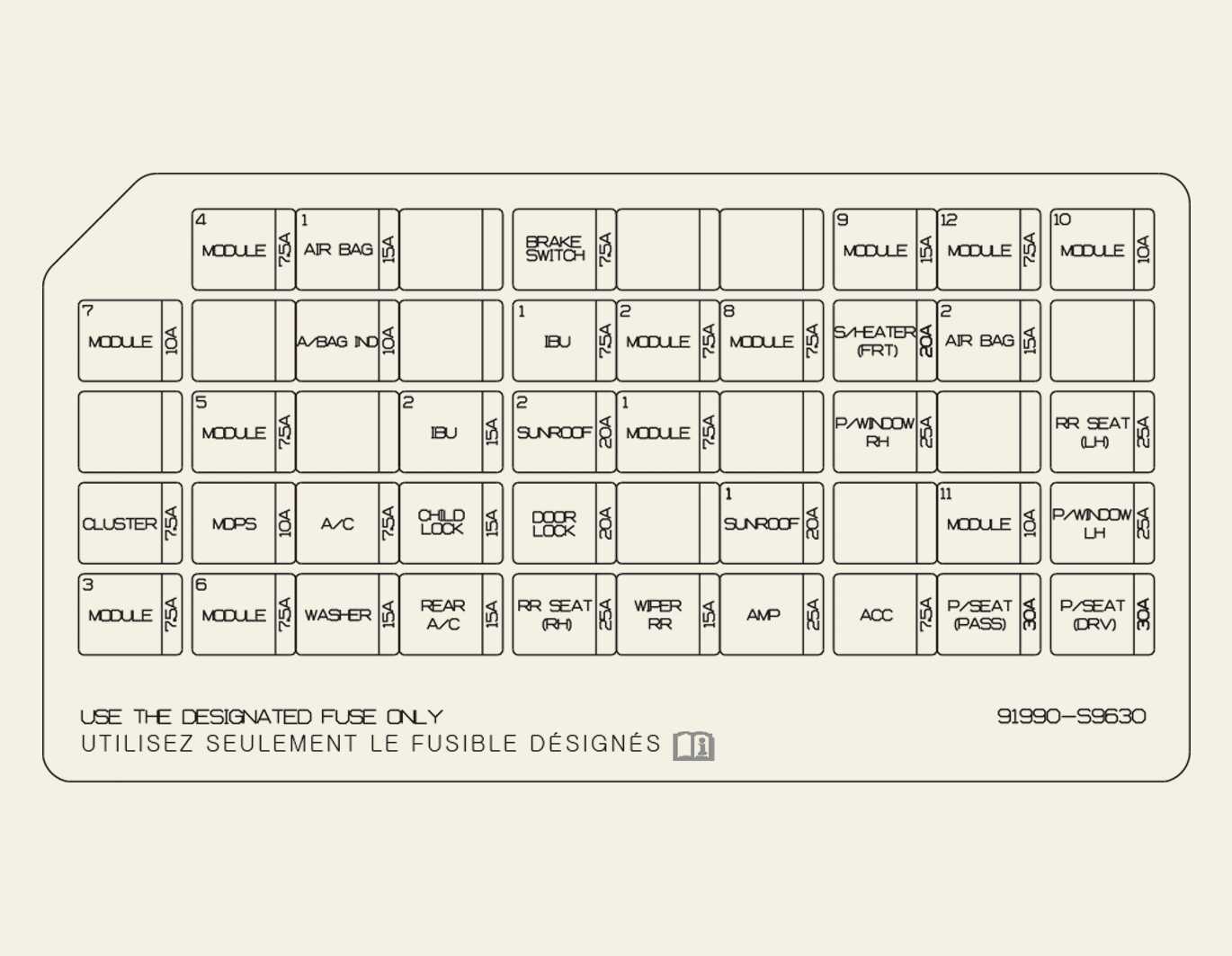 ICU Junction Block (Fuse - DOOR LOCK, BRAKE SWITCH, CHILD LOCK, RR SEAT (RH), SUNROOF 2), IBU, IAU |