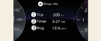 This display shows the trip distance (1), the average fuel efficiency (2), and the total driving time (3) information once per one ignition cycle.