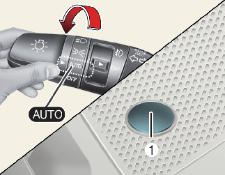 When the light switch is in the AUTO light position, the taillights and headlights will turn ON or OFF automatically depending on the amount of light outside the vehicle.