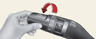 To operate the lights, turn the knob at the end of the control lever to one of the following positions: