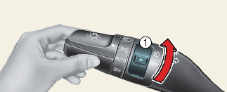 The fog lights will turn on when the fog light switch (1) is turned to the on position after the headlight is turned on.