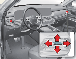 To change the air temperature in the passenger compartment, turn the knob to the right for warm and hot air or to the left for cooler air.