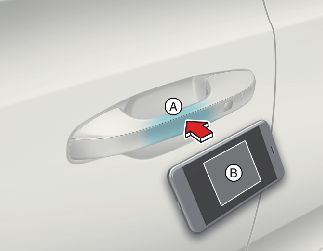 If the driver touches the smart phone NFC antenna to the driver's or passenger's door handle authentication pad for more than 2 seconds, the door will lock or unlock.