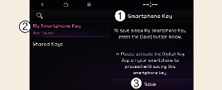 When there is a digital key (smart phone) already saved in the vehicle, the Save menu is disabled. If you want to save a digital key again, refer to More Details and follow the deleting procedure first before saving a digital key.