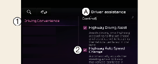 With the vehicle on, touch Settings → Vehicle → Driver Assistance → Driving convenience → Highway Auto Speed Change on the infotainment system.