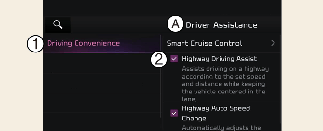 If Highway Driving Assist is selected, it helps maintain distance from the vehicle ahead, maintain the set speed, and helps center the vehicle in the lane.