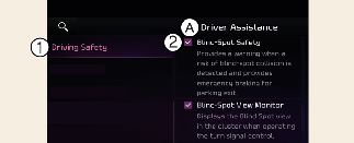 If Blind-Spot Safety is deselected, the driver should always be aware of the surroundings and drive safely.