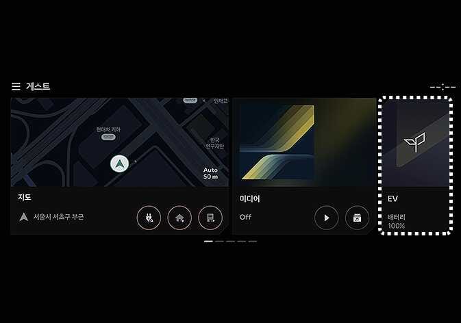 인포테인먼트(오디오, 비디오, 내비게이션) 홈 화면에서 EV 메뉴를 선택하면 EV 모드로 진입합니다. |