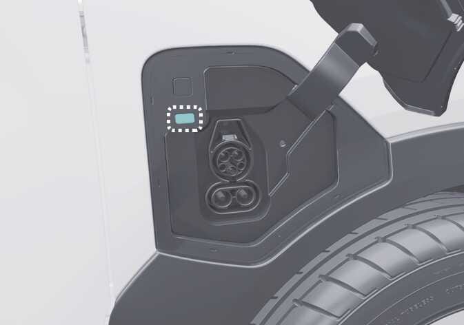 예약 충전이 설정되어 있고, 완속 충전기 또는 휴대용 충전기(ICCB: In Cable Control Box)를 연결하여 충전을 할 경우 충전 도어의 충전 상태 표시등이 주황색으로 켜집니다.