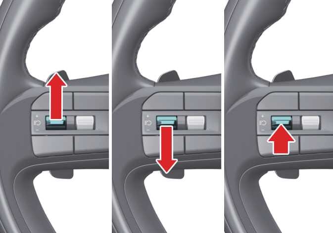 재설정 OOV055008_3 속도 제한 기능이 일시 해제된 후 다시 켜려면 스위치를 올리거나, 스위치를 내리거나, 스위치를 누르십시오. 스위치를 올리거나 스위치를 내리면 수동 속도 제한 보조의 속도가 현재 클러스터의 속도로 설정됩니다. 스위치를 누르면 일시 해제하기 전의 설정속도로 설정됩니다.