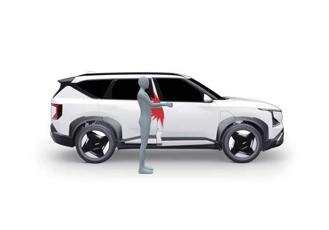 도어나 테일게이트를 열거나 닫을 때 손이나 머리 등 신체 일부가 끼거나 부딪혀 다칠 수 있습니다. 신체 일부가 끼거나 부딪히지 않도록 확인 후 도어 및 테일게이트를 열거나 닫으십시오. |