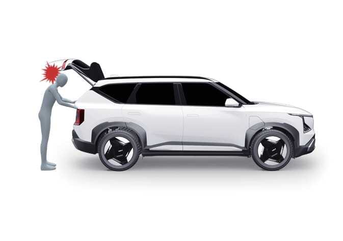 테일게이트를 열고 닫거나 물건을 넣고 꺼낼 때에 모서리 등 날카로운 부분에 신체 또는 물건이 부딪힐 경우 다치거나 손상될 수 있으니 테일게이트 개폐 시 주의하십시오. 특히 어린이는 얼굴, 머리 등이 테일게이트 주변부 등에 부딪히는 경우 다칠 수 있으니 항상 주의를 기울여 주시기 바랍니다. |