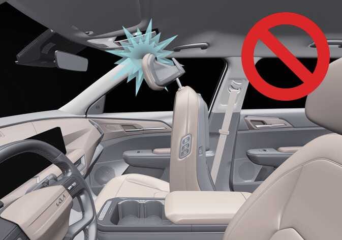 헤드레스트와 시트의 높이가 상단에 있고, 시트가 앞쪽으로 이동된 상태에서 시트 등받이를 앞으로 젖힐 경우 선바이저 등 주변 부품과 닿을 수 있으니 주의하십시오.