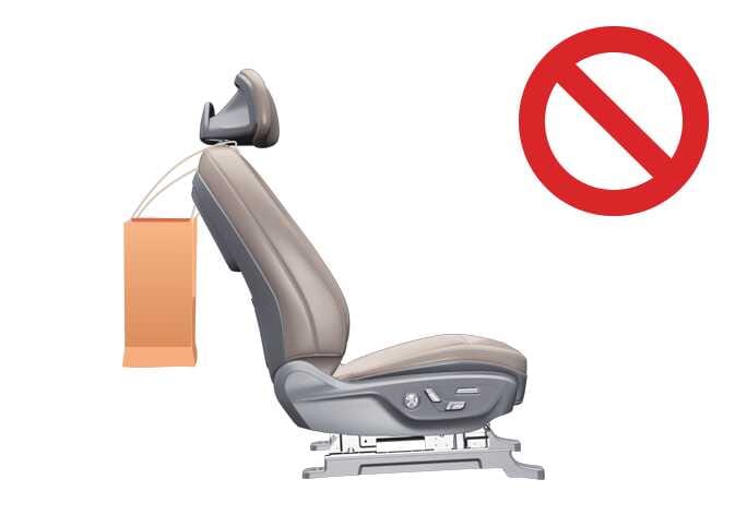 헤드레스트에 액세서리 등 다른 물건을 걸거나 부착하지 마십시오. 사고 시 다칠 수 있습니다.