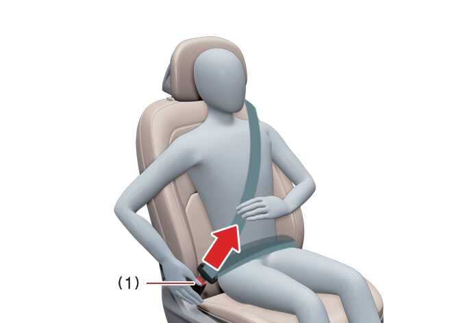 해제 방법 OOV025028 버클에 있는 해제 버튼(1)을 누른 상태에서 플레이트를 당겨 내십시오. 플레이트가 유리창에 부딪치지 않도록 플레이트를 잡고 천천히 안전벨트가 감기도록 하십시오.