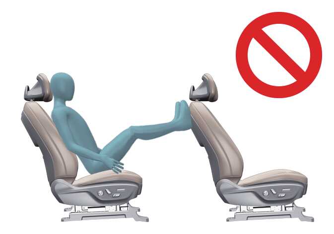 뒷좌석 착석 시 다리를 동승석 위에 올려 놓지 마십시오.