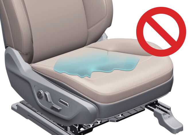 동승석에 실수로 다량의 음료수 또는 물을 쏟았을 경우 에어백 경고등이 켜지거나 오작동을 일으킬 수 있으니 시트를 완전히 말리고 운행하십시오.
