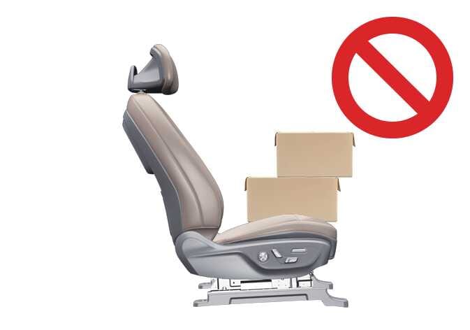 노트북이나 DVD 등 전자 제품이나 다량의 물통 등 무거운 물건을 동승석 시트 위에 올려 놓지 마십시오.