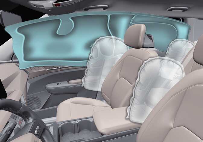 또한 전복 센서가 차량의 전복을 감지한 사고의 경우 양쪽의 사이드 및 커튼 에어백이 모두 작동 됩니다.