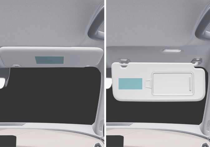 에어백의 위험을 알 수 있게 에어백 경고 라벨이 동승석 선바이저의 앞면과 뒷면에 부착되어 있습니다. 운행 전에 반드시 주의 사항을 숙지하십시오. |