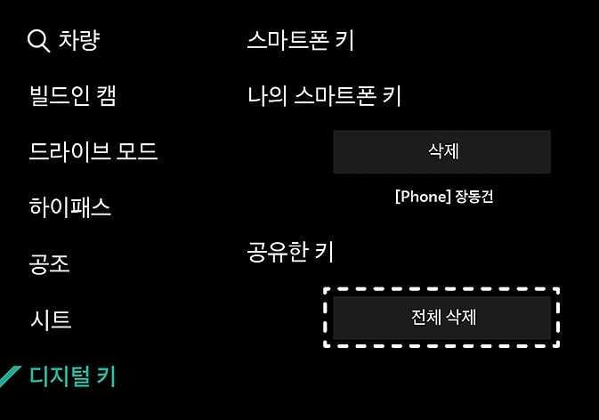 등록된 디지털키 2(스마트폰)가 없으면 전체 삭제를 선택할 수 없습니다.