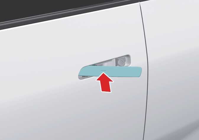 스마트키를 휴대한 채 차에서 떠날 때는 모든 도어(후드 및 테일게이트 포함)를 닫은 후 반드시 실외 도어 손잡이에 있는 도어 잠금 센서부를 터치하여 도어가 잠겼는지 확인하십시오.