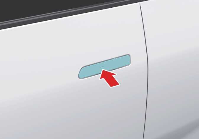 실외 도어 손잡이에 있는 도어 잠금/잠금 해제 센서부를 터치하여 도어를 잠금 해제할 수 있습니다.