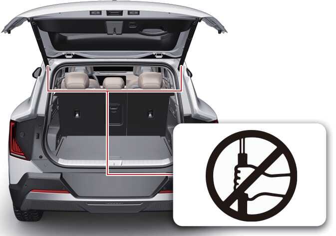 다음과 같은 경우에는 테일게이트가 열리지 않거나, 의도치 않게 닫혀 주변 사람에게 부상을 입힐 수 있습니다.