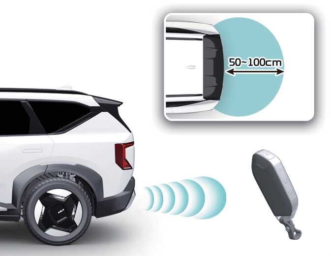 테일게이트 후방 약 50~100 cm 이내에 스마트키가 감지되면 웰컴 경보가 작동하면서 기능이 작동됩니다.