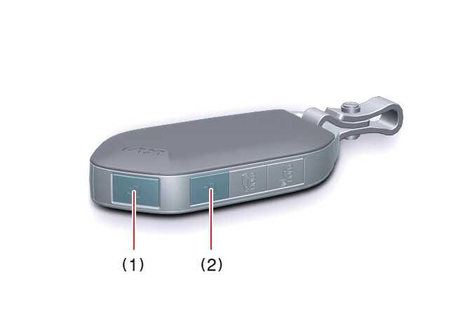 차량의 전원이 OFF 인 상태에서, 도어 잠금 버튼(1)을 길게(3초 이상) 누르면 도어가 잠긴 뒤 유리창이 올라가기 시작하고 도어 잠금 해제 버튼(2)을 길게 누르면 내려갑니다. 유리창은 사용자가 누르는 만큼 움직이며, 버튼에서 손을 떼면 멈춥니다.